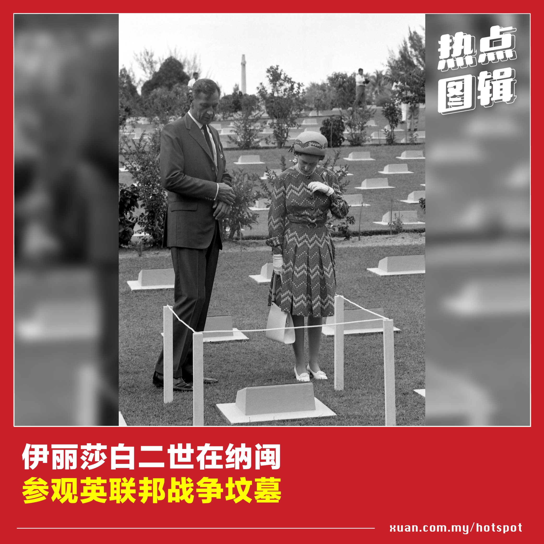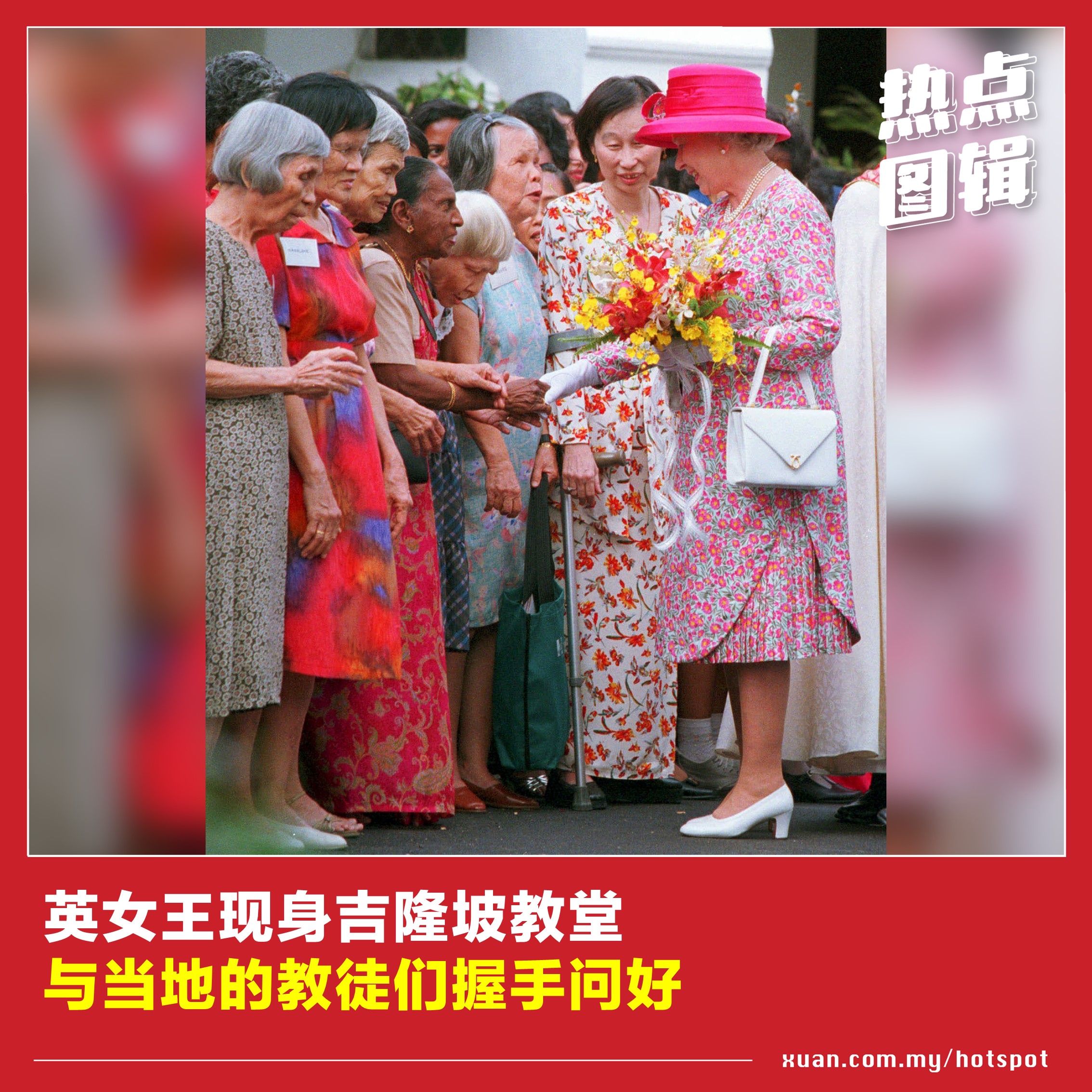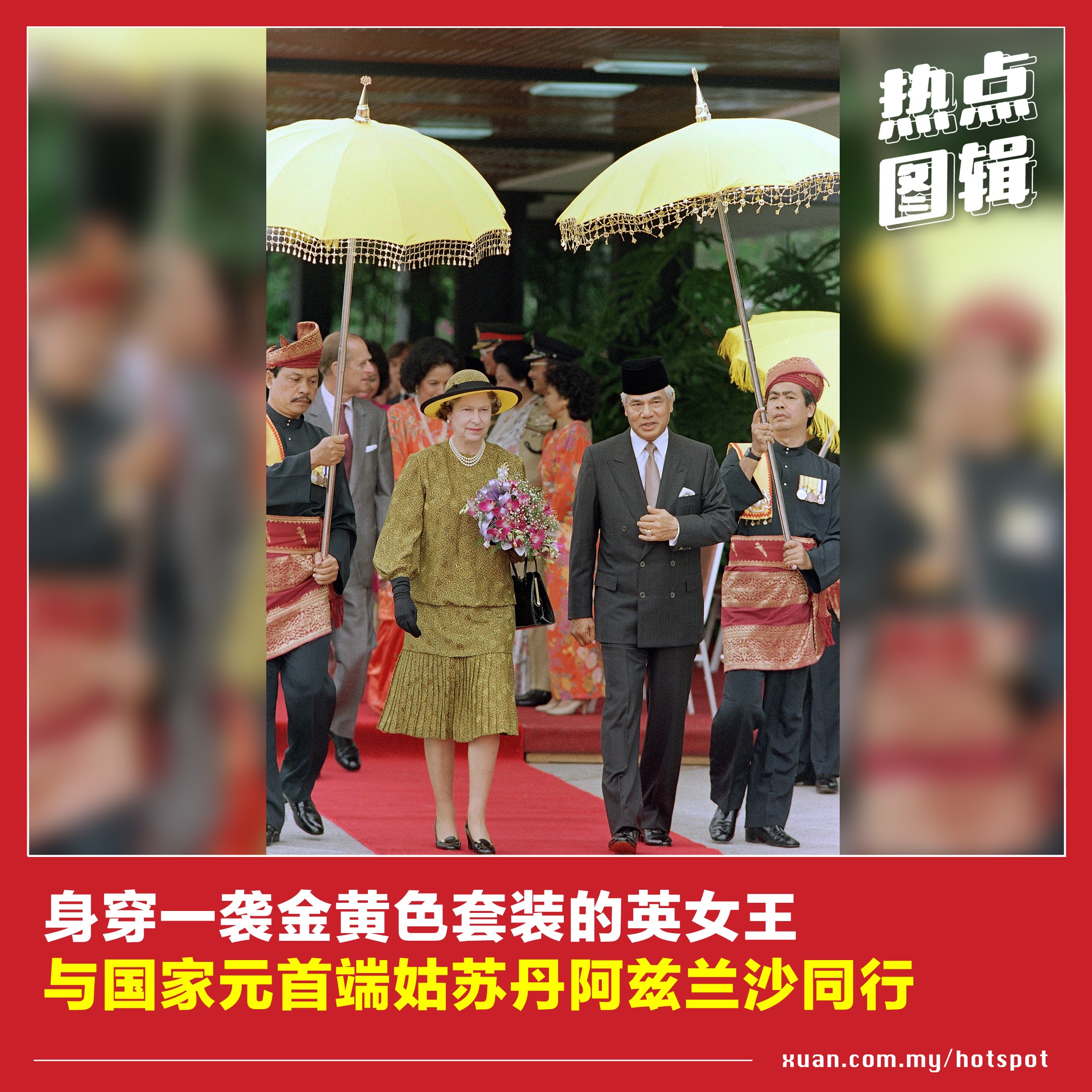 英女王伊丽莎白二世曾三度访马,足迹遍布吉隆坡、槟城、马六甲和砂拉越等地。从黑白照片步入彩色照片时代,英女王也见证着大马的时代变迁。