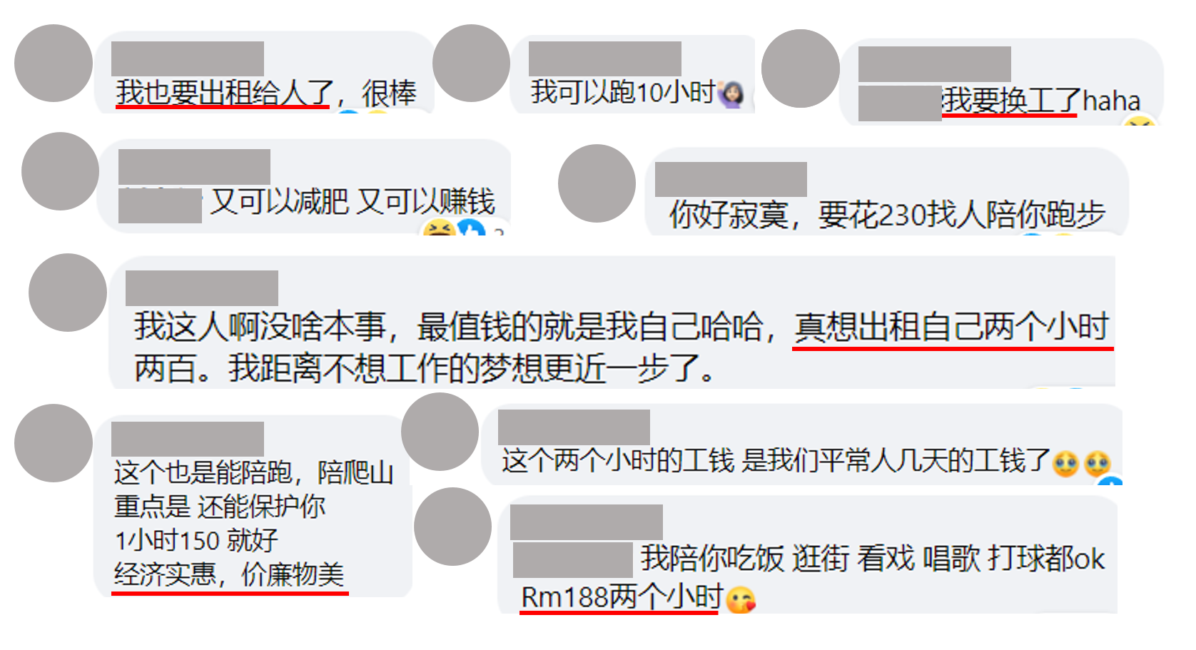 其中,不少网民对2小时赚取超过RM200的酬劳,感到非常惊讶。有的还打趣说自己要转行,以获取更高的薪资。