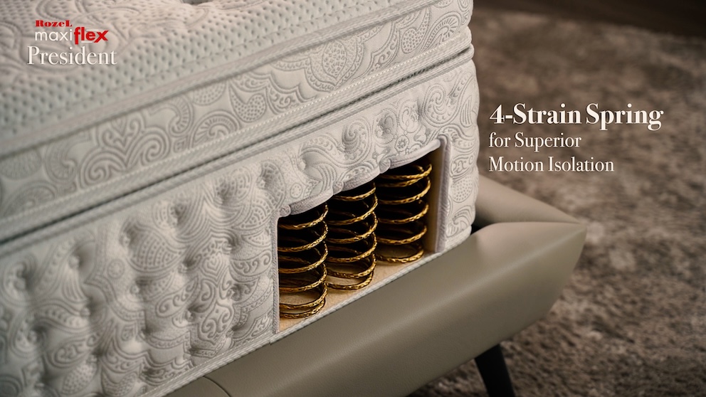 配合这次影片主打的“换新伴侣”概念,Rozel旗下三款Maxiflex系列床褥,分别拟人化成三种性格不同的“伴侣类型”。每一款床褥,不只在设计与结构上各有侧重,更像是睡眠中最懂你的人。President“成熟稳重型”
