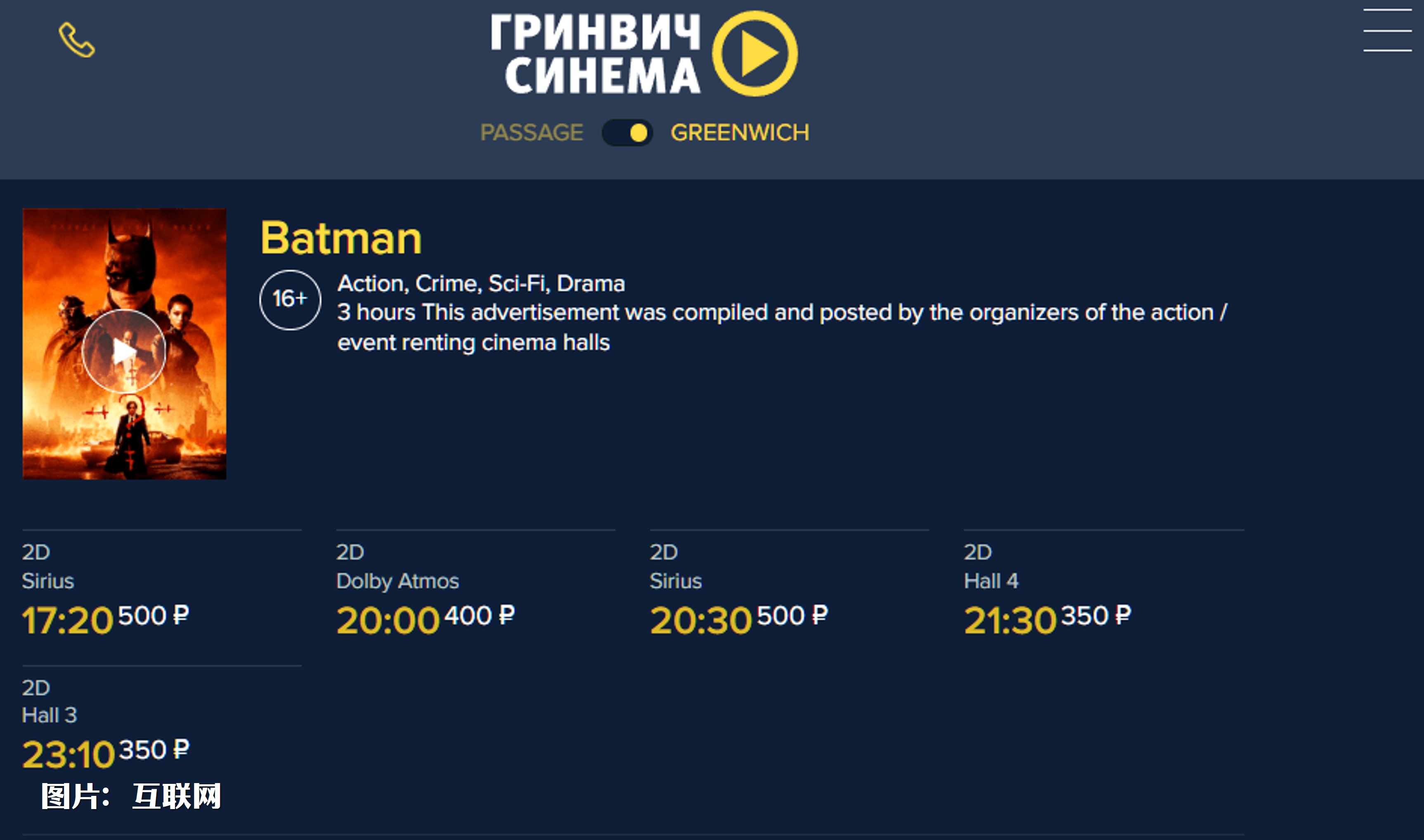 线上订票系统可看《新蝙蝠侠》一天排满5档场次,但电影院会在官网上标注上映为“私人活动”。