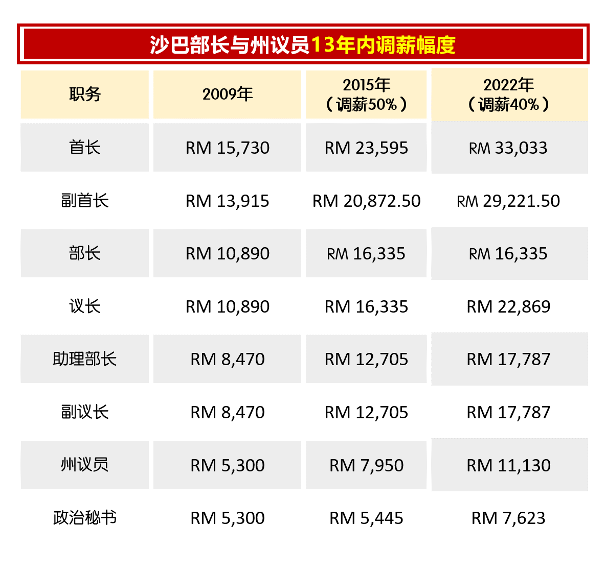 获得涨薪的职位包括首长、副首长,州内阁部长,助理部长、州议长、副议长、州议员及政治秘书。