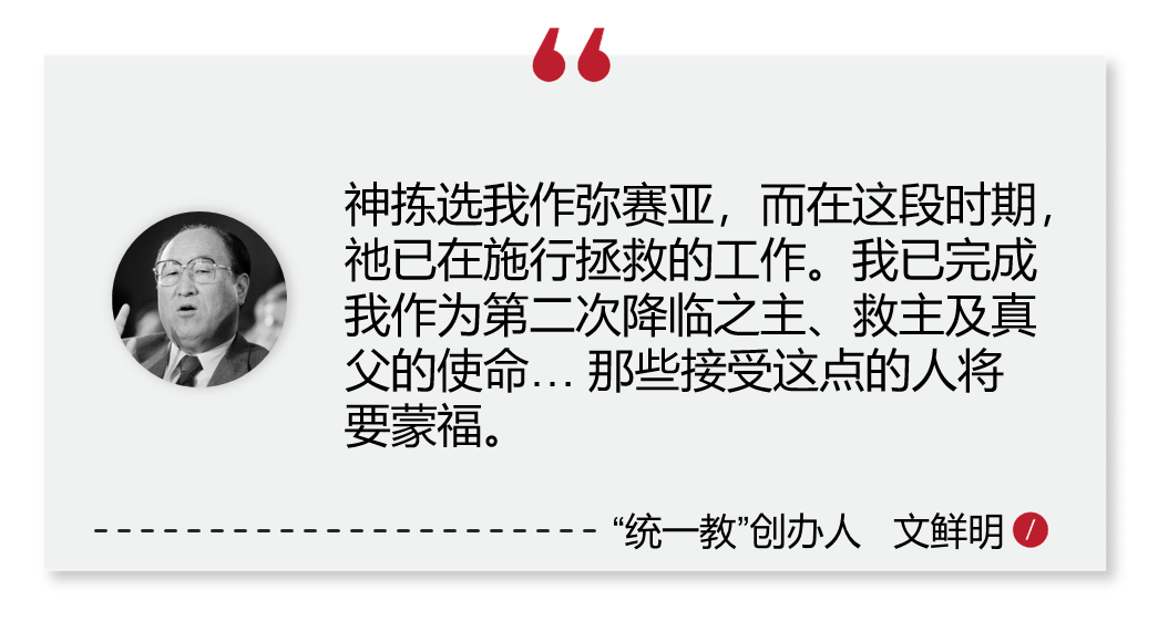 “统一教”坚信,信徒结婚不是为了爱情,而是为了生育“无原罪“的子女,实现扩张“神世界”的使命。