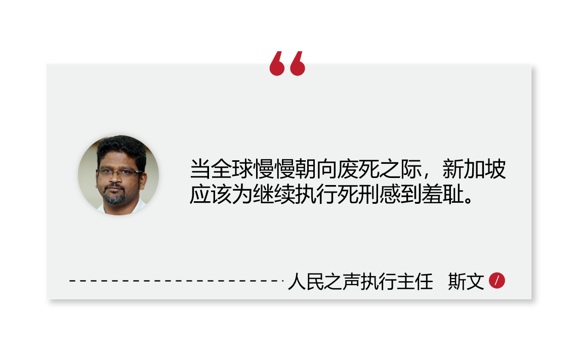 同时,国际特赦组织大马分会研究员叶志杰(Brian Yap)以及人民之声执行主任斯文(Sevan Doraisamy)也异口同声,要求新加坡检讨对死刑的立场。
