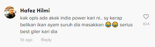 除此之外,有一名网民透露,他的公司有一名印裔大姐,非常会煮咖喱,因此他经常买好鱼和鸡肉,请她烹饪料理。