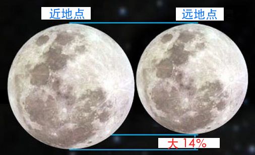 倘若同样是满月,但当月亮在“近地点”的时候,要比“远地点”的视直径大14%,视面积则是大30%。