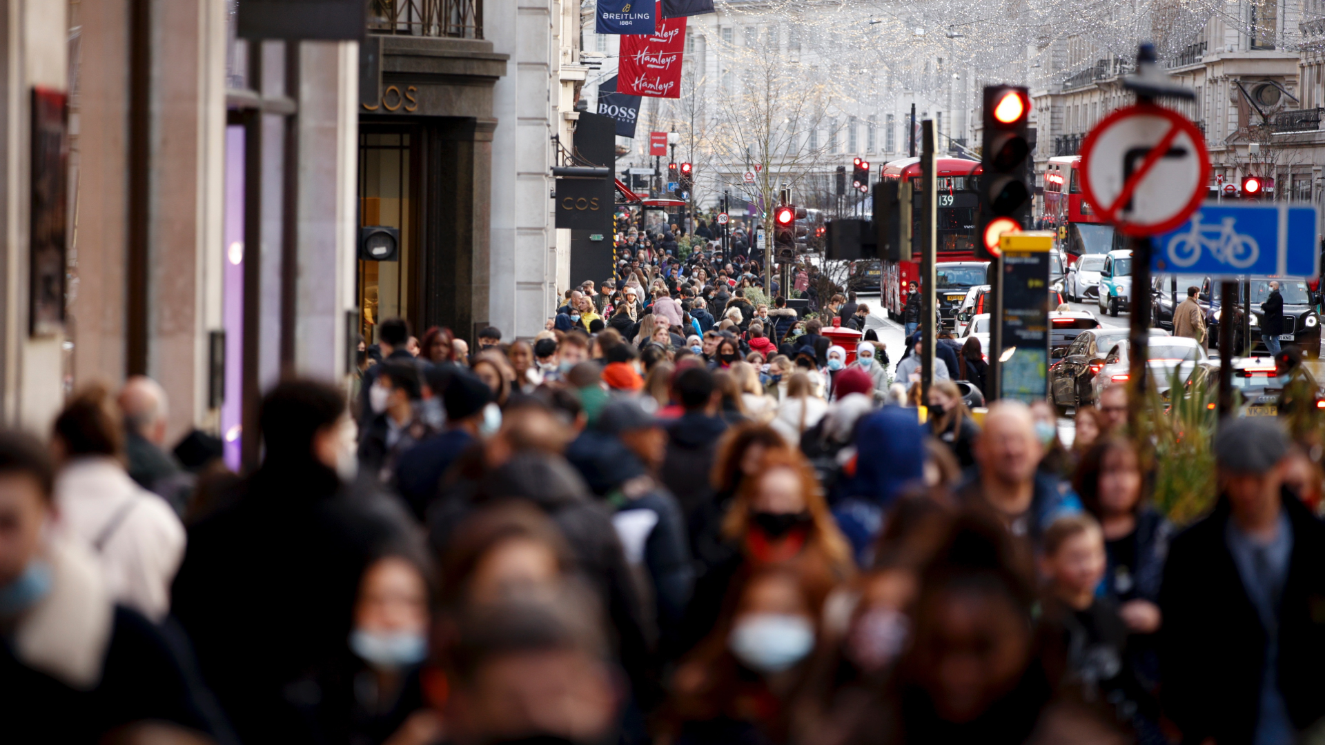 Omicron“重灾区”英国伦敦,圣诞后的周一街道上已经人潮汹涌。