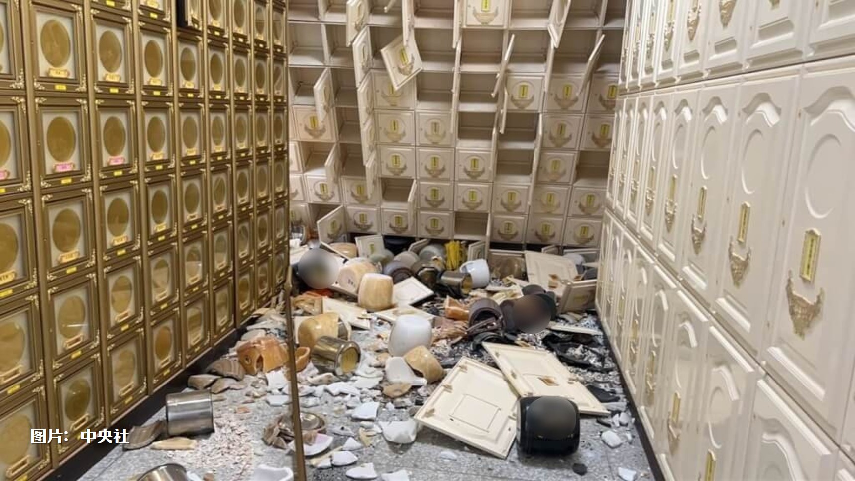 这次的地震,就连“先人”也难逃一劫。综合台媒报导,坐落在台东的鹿野纳骨塔也不敌强震,一些放置骨灰的柜子因强震倒塌与倾斜,有大约880个骨灰坛摔到地板上破碎,现场都是碎玻璃及骨灰,另外也有高达90%的牌位也倒下来。