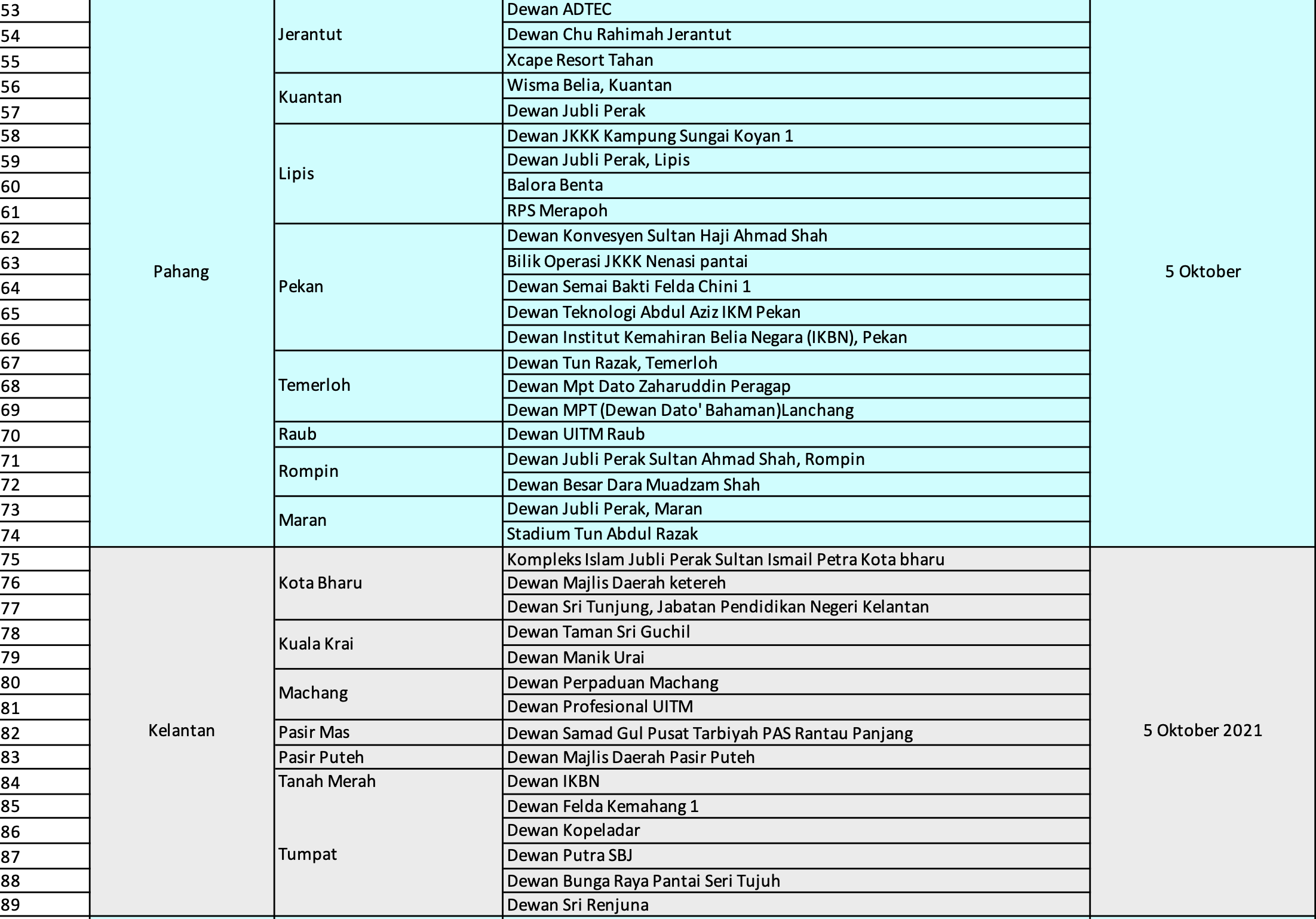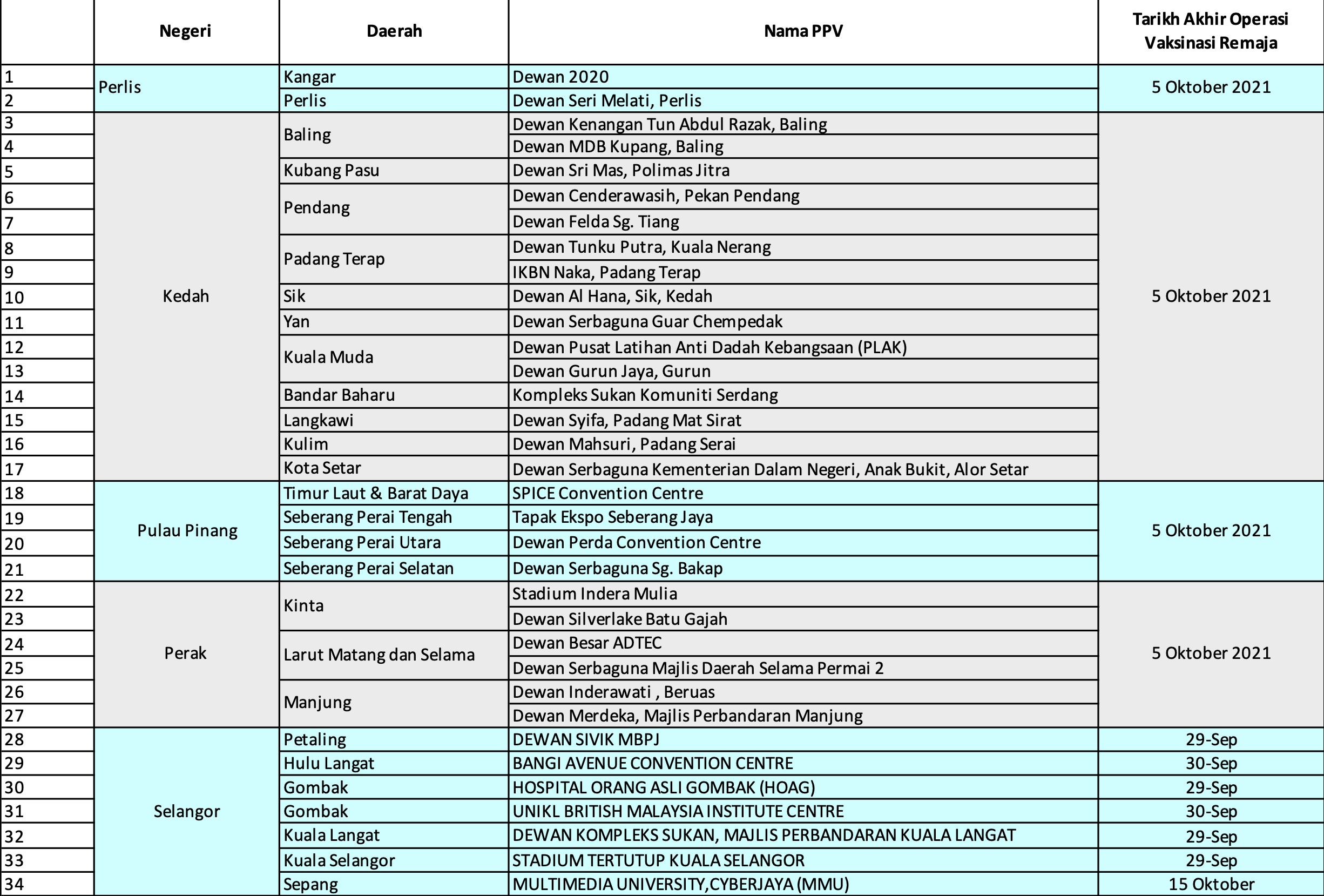PICK-Remaja secara walk-in berjadual akan bermula Khamis, 23 Sept di 156 PPV seluruh negara.