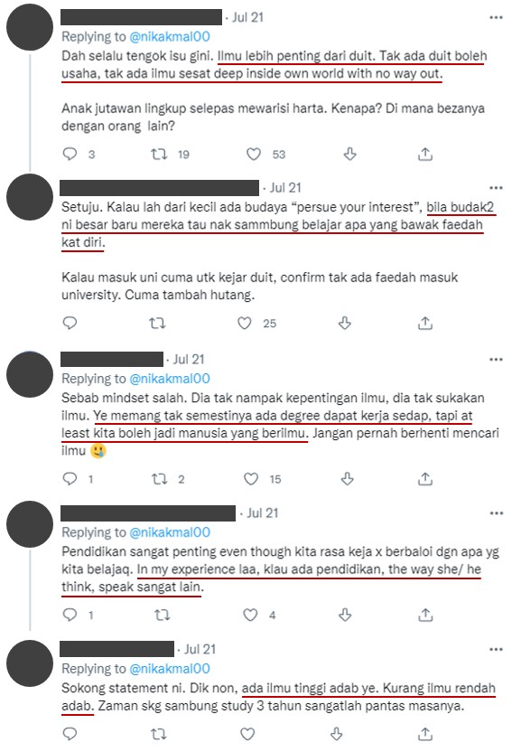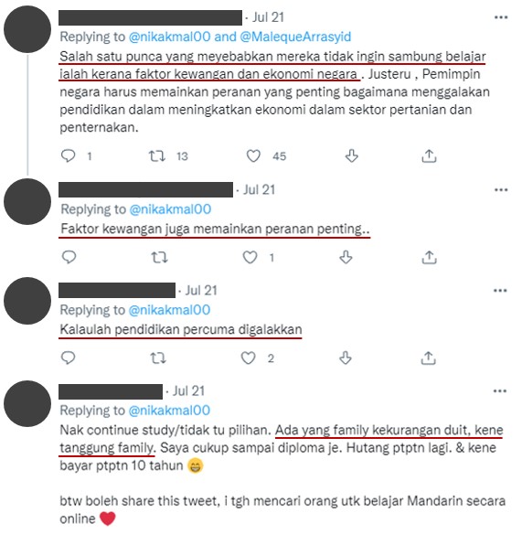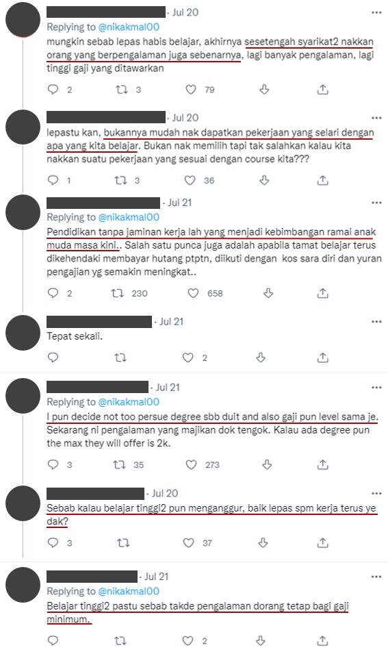 还有网民认为,如果从大学毕业后依然要面对失业的问题,那倒不如在获取SPM文凭后就出来工作更实在。