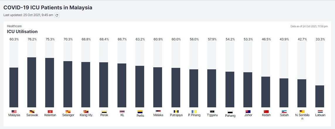 纳闽的加护病房使用率以33,3%,仍然继续维持在最少。但却比前一周增加了20.3%。