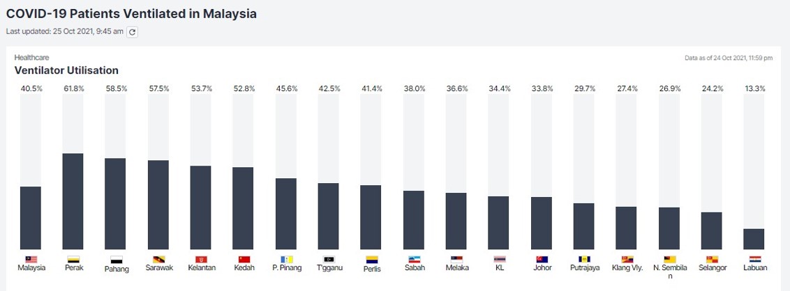 彭亨和砂拉越则分别以58.5%及57.5%,排在第二及第三。纳闽的呼吸辅助器使用率同样是最少,仅有13.3%。