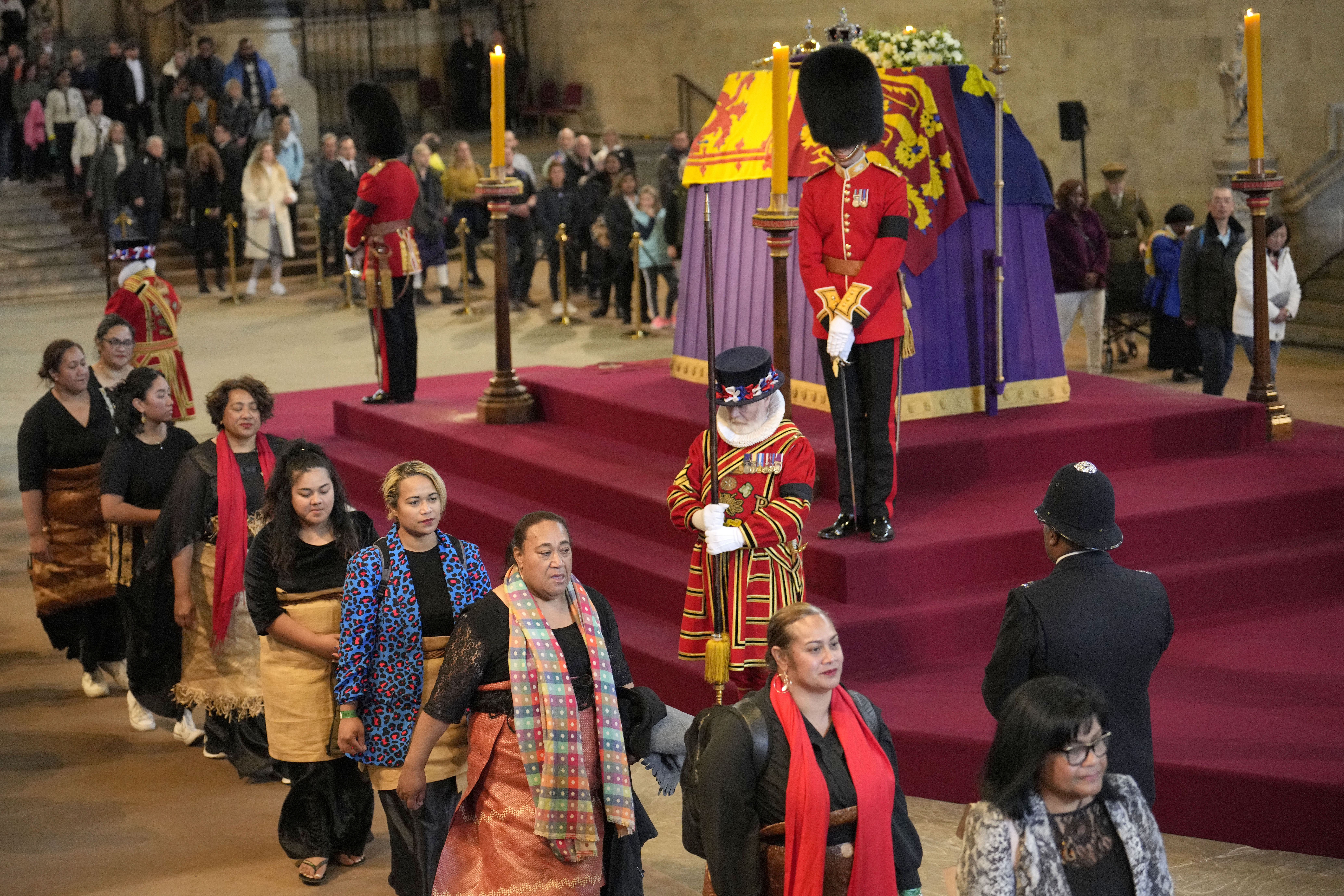 德仁天皇在西敏寺瞻仰英女王灵柩。 大马王室也受邀出席,国家元首苏丹阿都拉陛下和国家元首后东姑阿兹扎,在9月16日抵达伦敦,准备今天出席英女王国葬,预计9月21日离开。