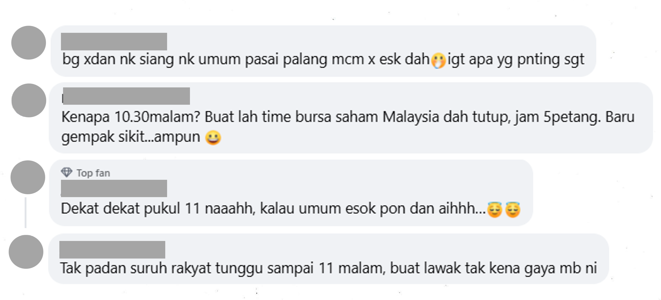 直播结束后,阿布巴卡事前预告直播的贴文留言区瞬间炸开了锅。不少网民吐槽,自己被晾在荧幕前苦等30分钟,却只等来一项“小宣布”;也有人质疑,如此小的事项,为何不能等到隔天再公布,直言10.30PM已是多数人准备休息的时间。