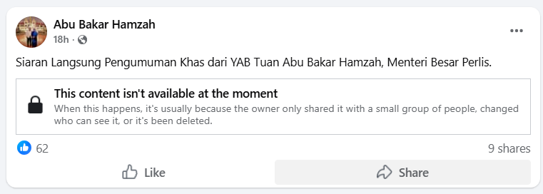 玻璃市州务大臣阿布巴卡昨天(1月29日)深夜开直播,民众原以为将公布多项惠民措施,结果却因宣布内容与公众预期存在落差而“翻车”,沦为大型网络吐槽现场。整场直播被形容为“阵仗开到最满,宣布却轻到不能再轻”,不仅未见任何重磅政策,反而因内容平淡、延迟开播,再加上直播影片事后火速下架,让这位刚上任不久的玻州大臣,成了网民冷嘲热讽的对象。