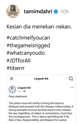 随着案件受耽搁,行动党上议员林哥斯华南(RA Lingeshwaran)昨晚在面子书发文,公开促请警方加快执法行动,将达敏带回国提控,不能再拖延。