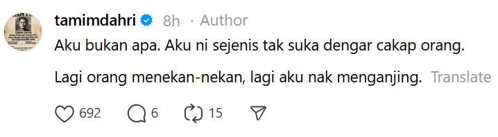 不过对于这番喊话,达敏显然不以为意,反而在Threads上发文,嘲讽林哥斯华南“他真可怜还需要施压”。