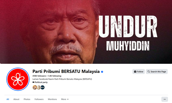 另外,土团党面子书的“门面”也失守了!该账号的封面照片从原本的2022年庆祝土团党6周年的纪念日,变成了要求慕尤丁下台的照片。
