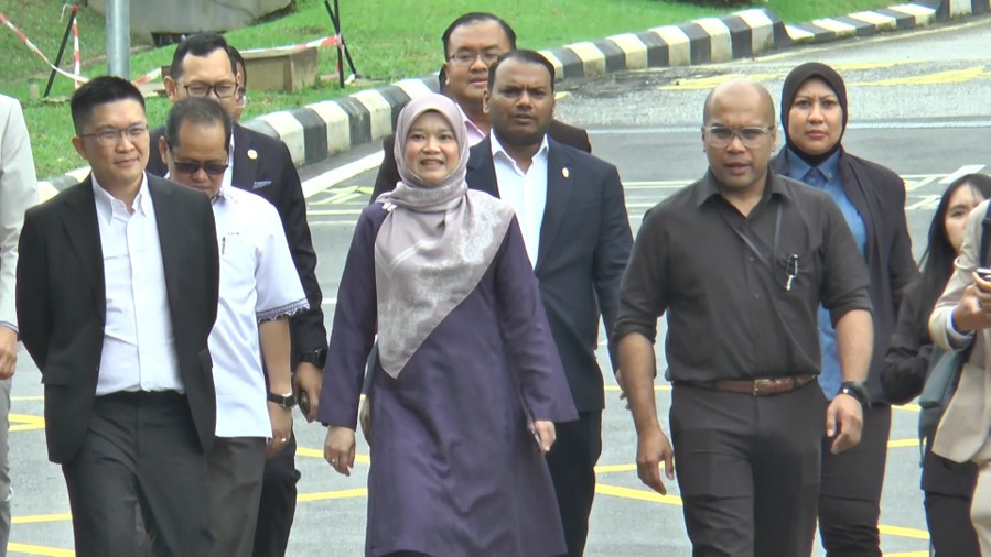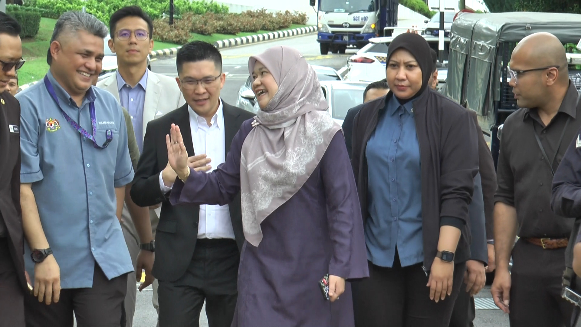 法丽娜在副部长黄家和以及教育总监莫哈末阿占的陪同下,步行到国会外。