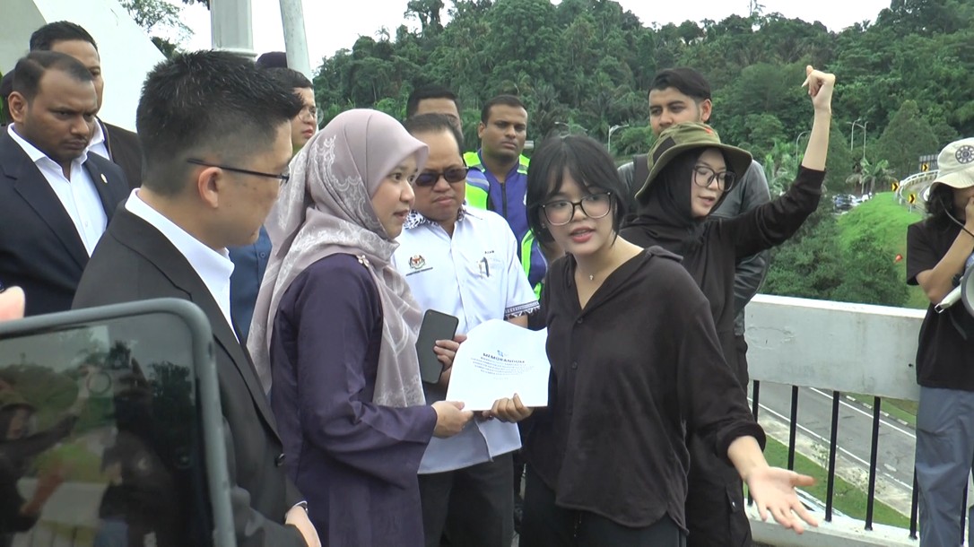 由一群学生、社运分子及公众大约35人组成的示威队伍,今天11:20AM聚集在国会大厦外,不断高喊口号,高举自制标语海报,要求法丽娜辞去教育部长职位。
