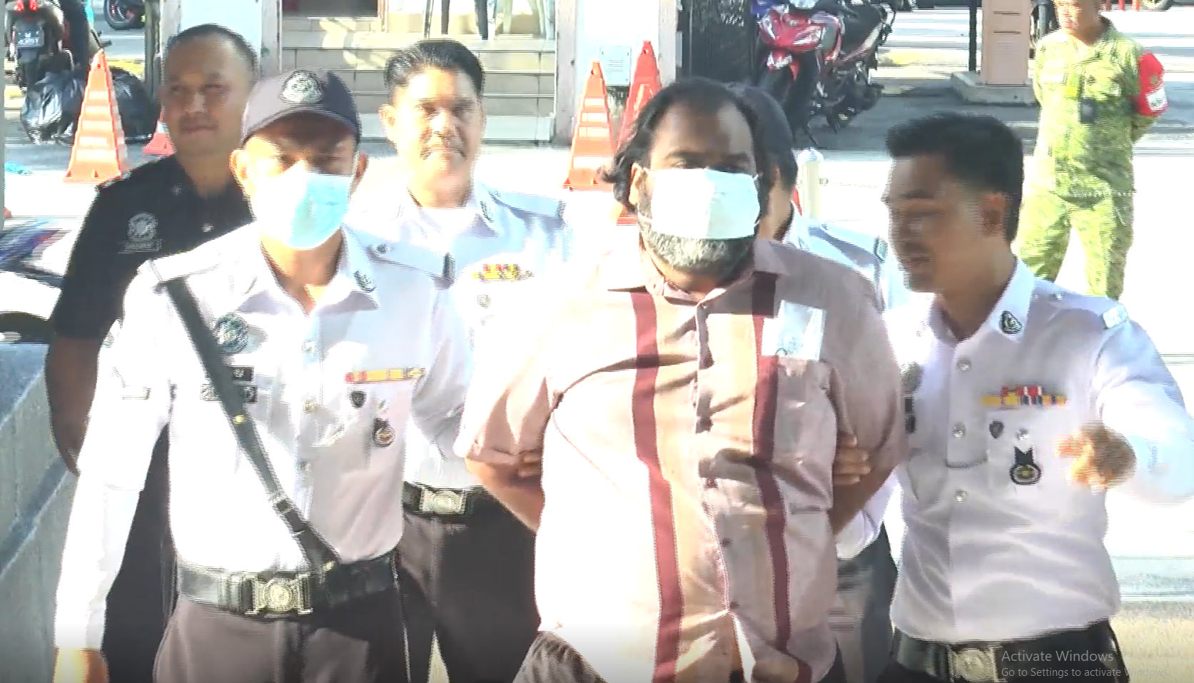 现年40岁的被告卡马拉兹于今早9AM,身穿红色衬衫,戴着口罩,并在交警押送下抵达吉隆坡法庭面控。