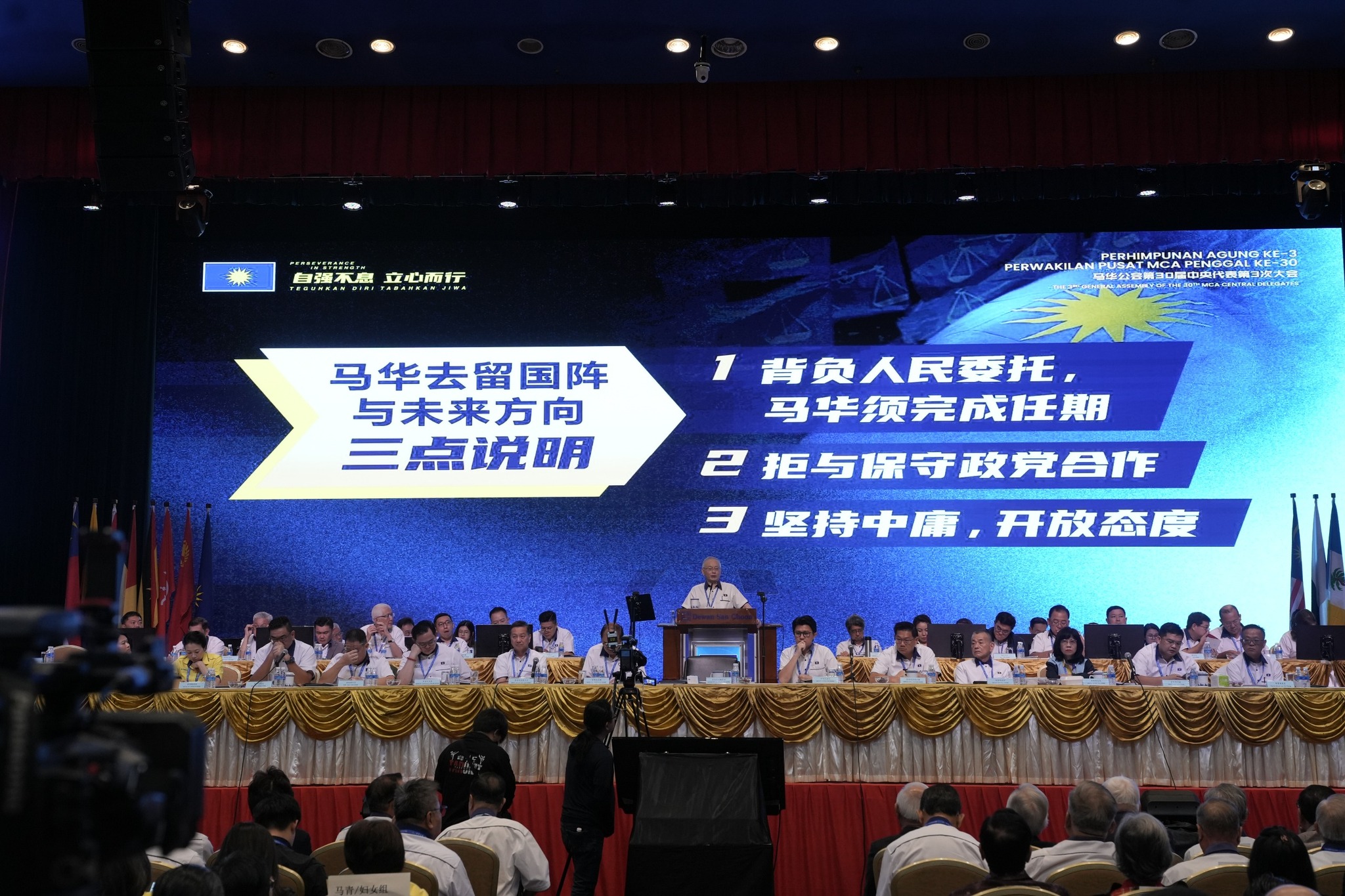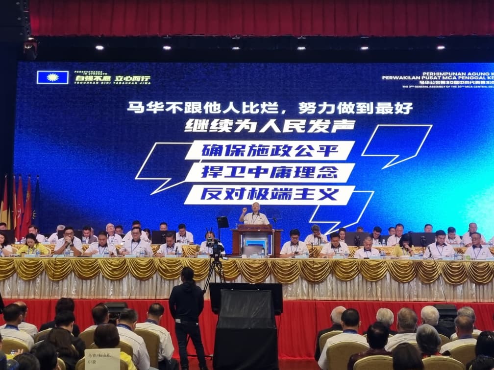 这次的代表大会上,根据马华公会面子书直播看出,现场的大会海报仅印上马华党徽,并没有国阵的“天秤”标志。
