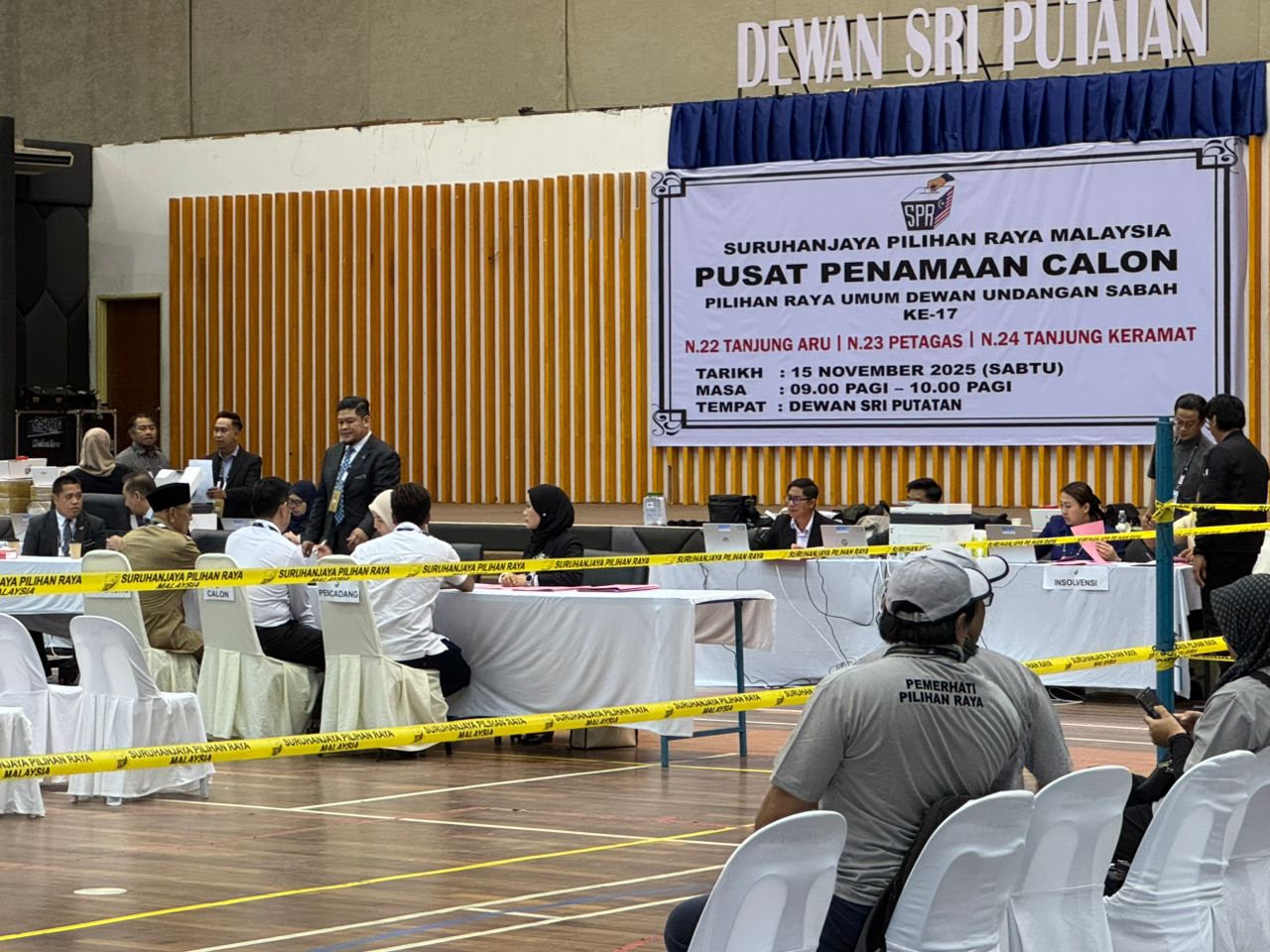 今天9AM至10AM,沙巴共有25个提名中心同步启动提名程序。各阵营候选人今早在各自领袖及支持者陪同下抵达提名中心提名。