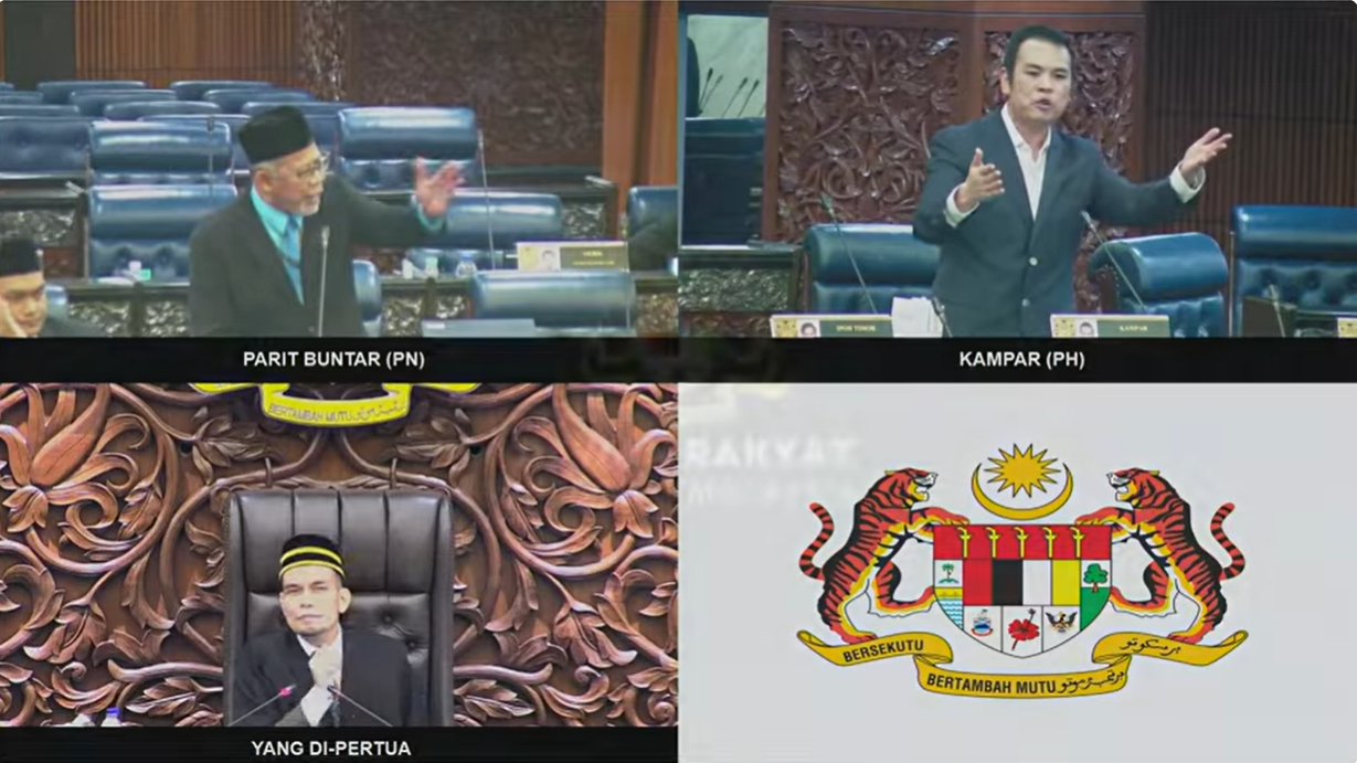 伊斯兰党巴里文打国会议员(左上)与行动党金宝国会议员(右上)隔空互骂