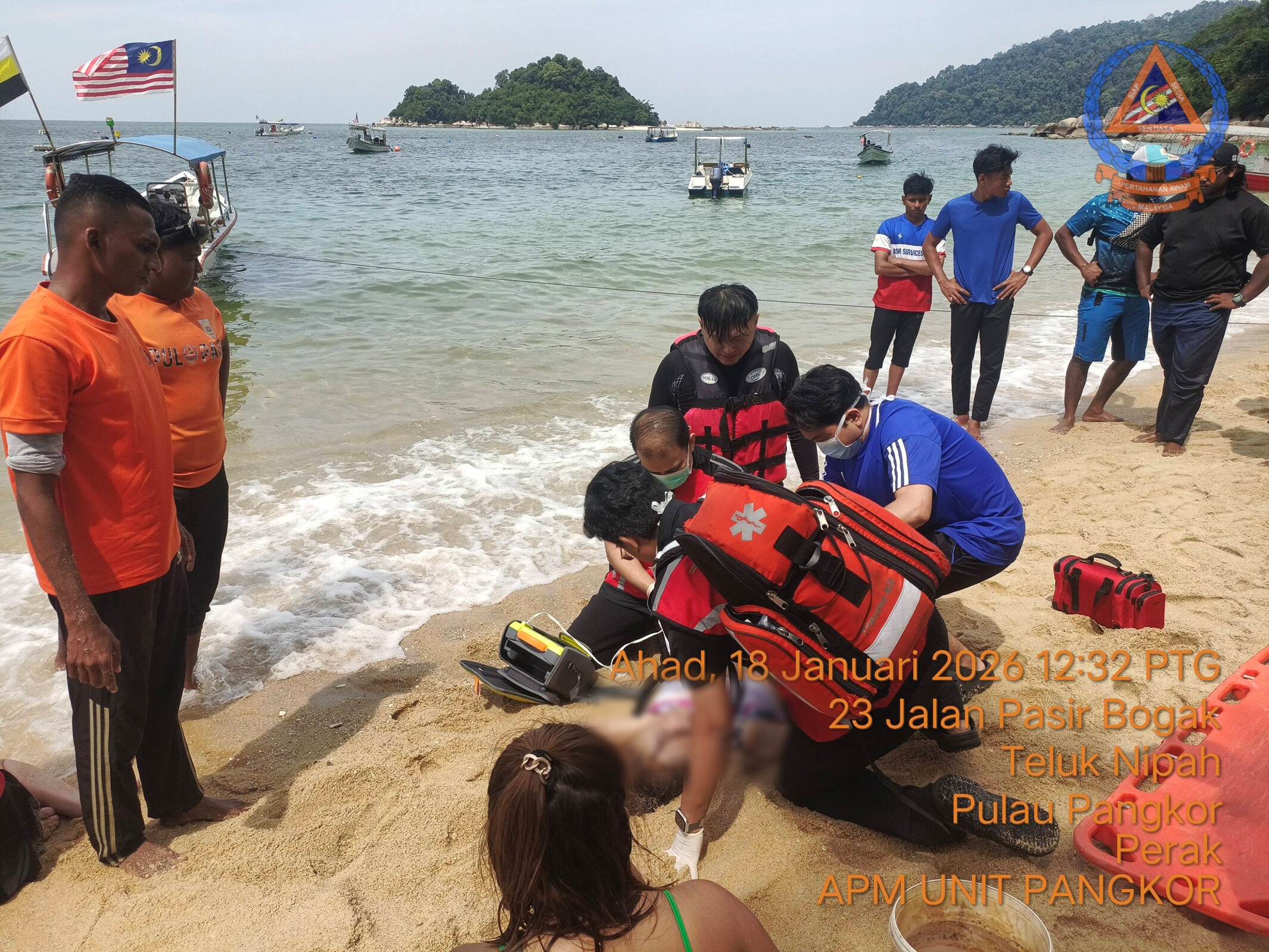 一名72岁台湾女游客昨天(1月18日)12:30PM左右,与家人在邦咯岛直落尼帕的珊瑚岛(Pulau Giam)海域浮潜时,不幸溺毙。