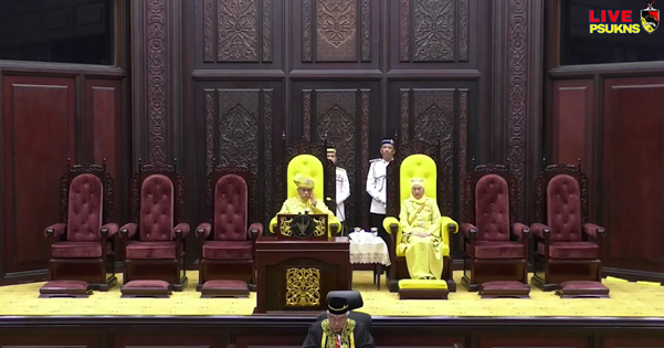 森州最高统治者端姑慕里兹殿下发表施政御词 (图:Pejabat Setiausaha Kerajaan Negeri Sembilan 面子书直播截图)