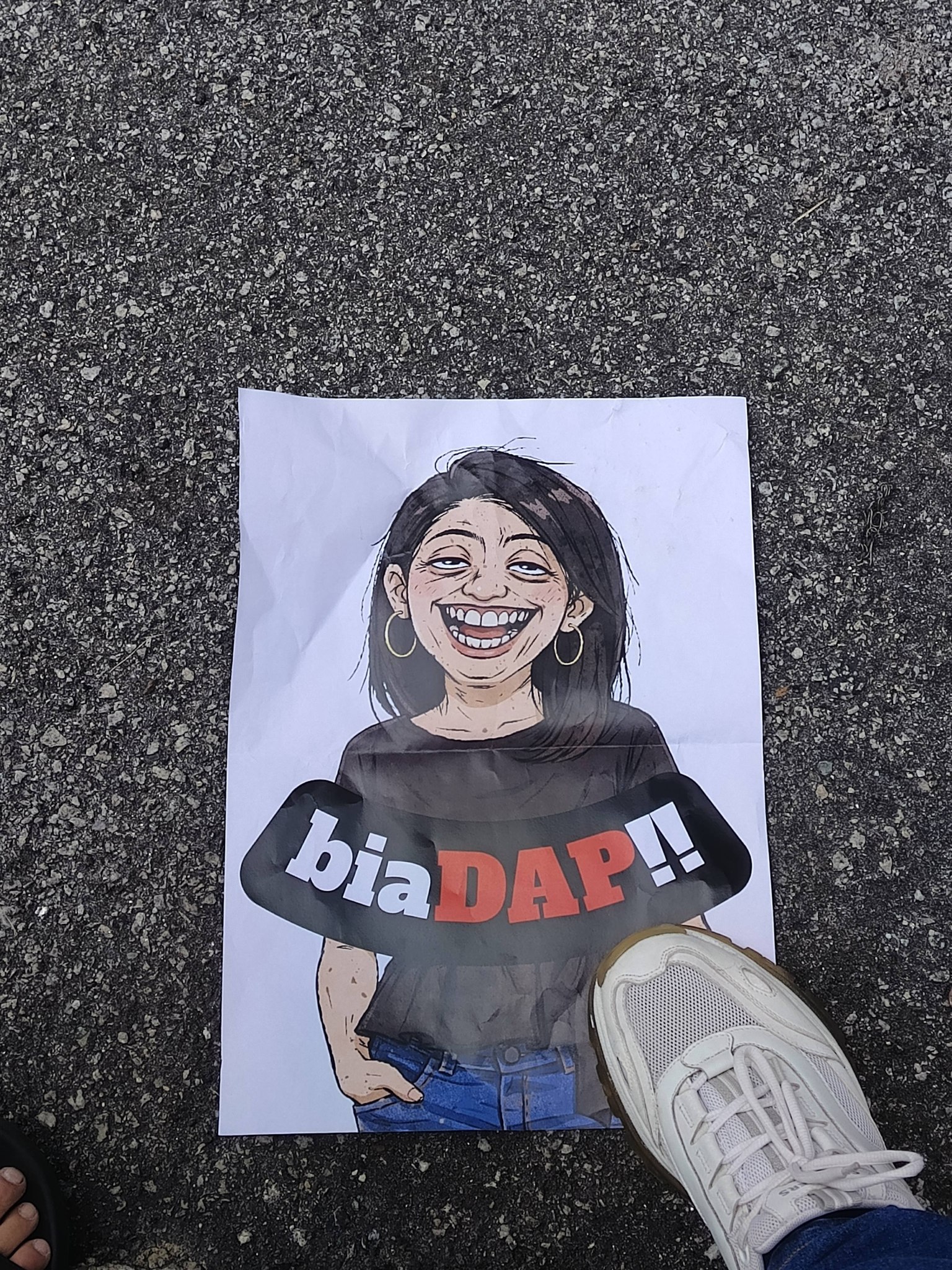 现场可见集会者举起横幅,同时也有人打印印有杨美盈脸部漫画的图像,并写有“BIADAP”(无礼)的字眼。