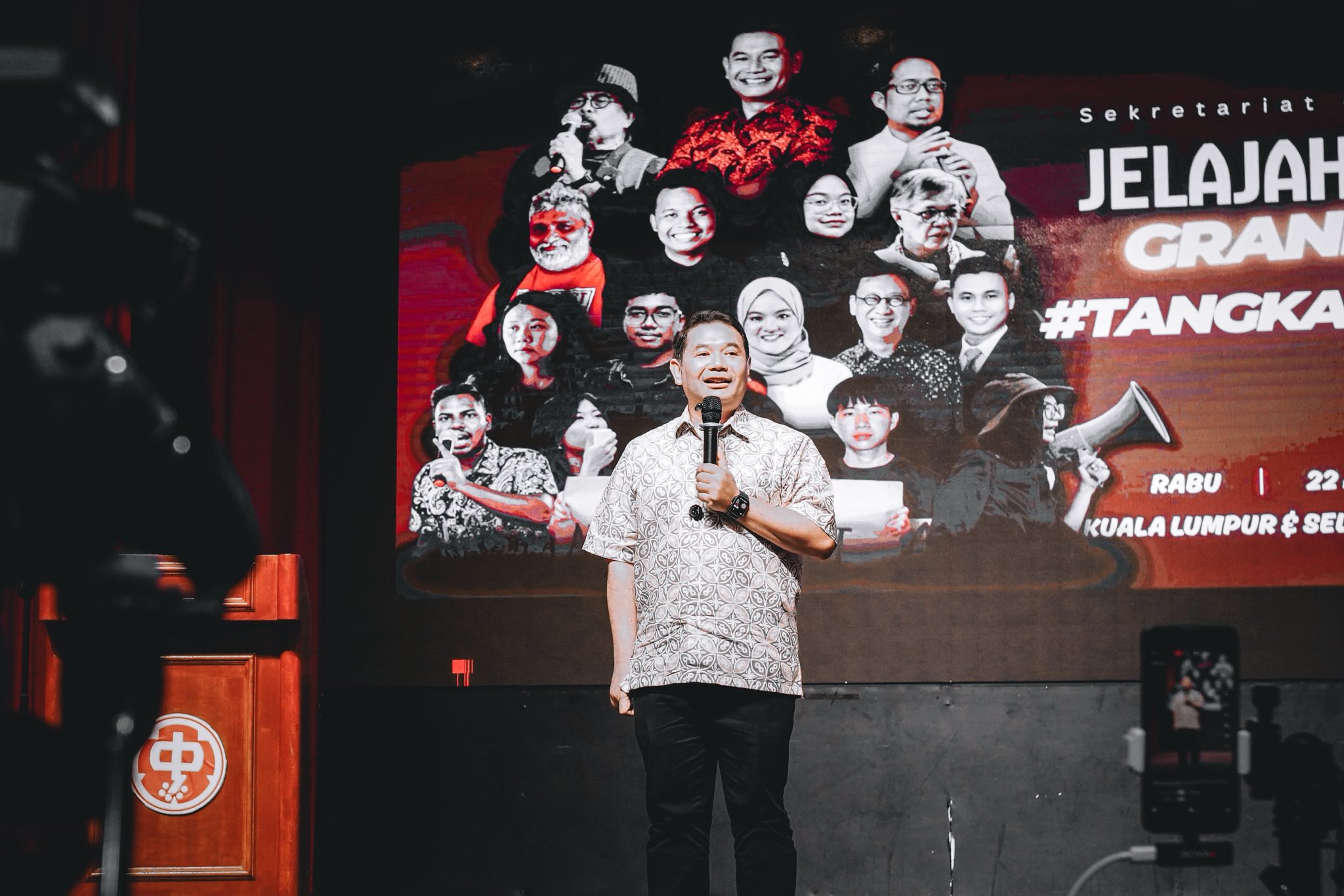 公正党班登国会议员拉菲兹在“逮捕阿占巴基”(Tangkap Azam Baki)巡回讲座会终场进行演讲。(图取自Mandiri - Pusat Pembangunan Rakyat面子书)