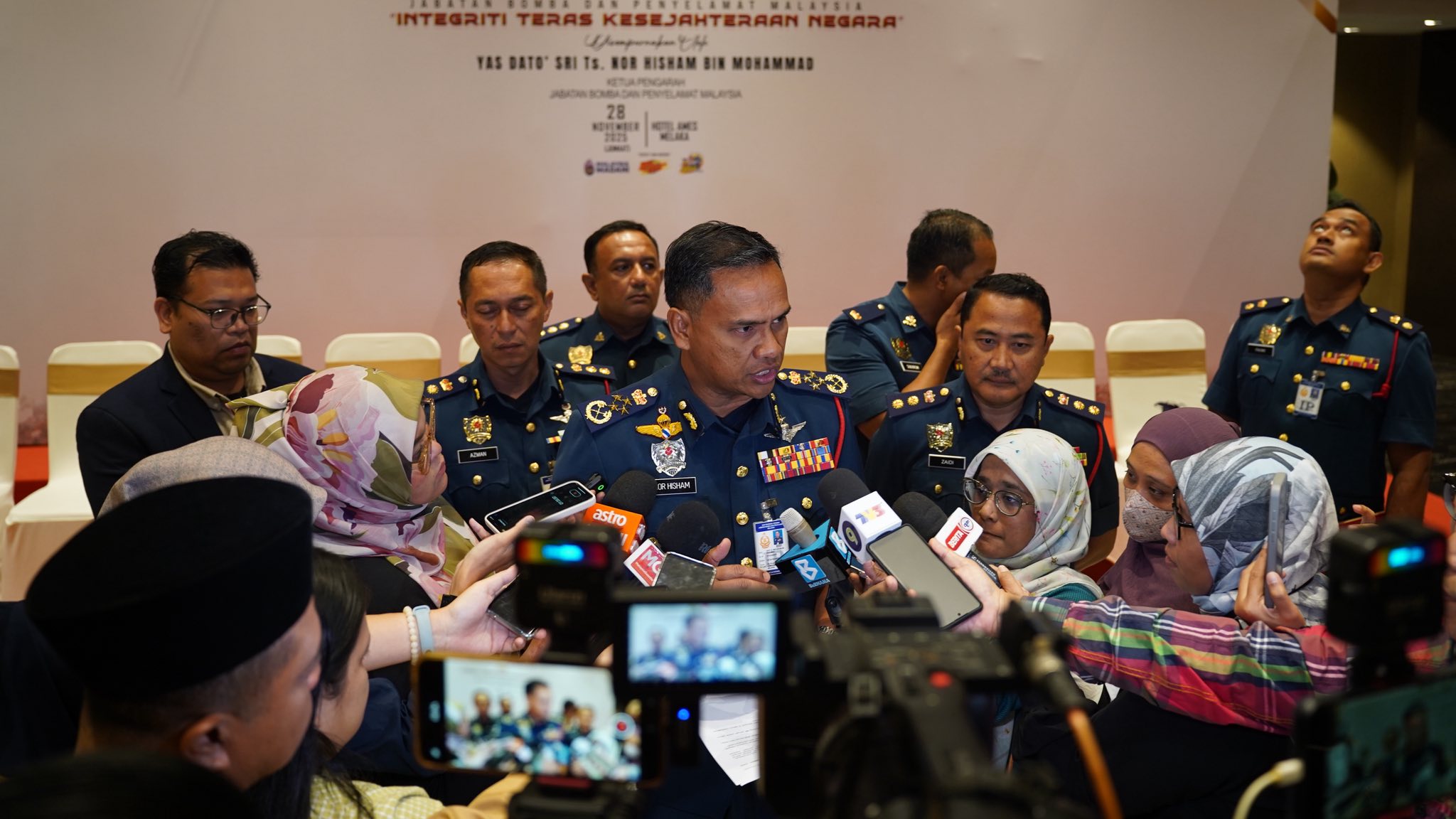 大马消拯局总监诺希山甲出席“2025年大马消拯局廉洁日”后的记者会。(图取自Jabatan Bomba dan Penyelamat Malaysia面子书)