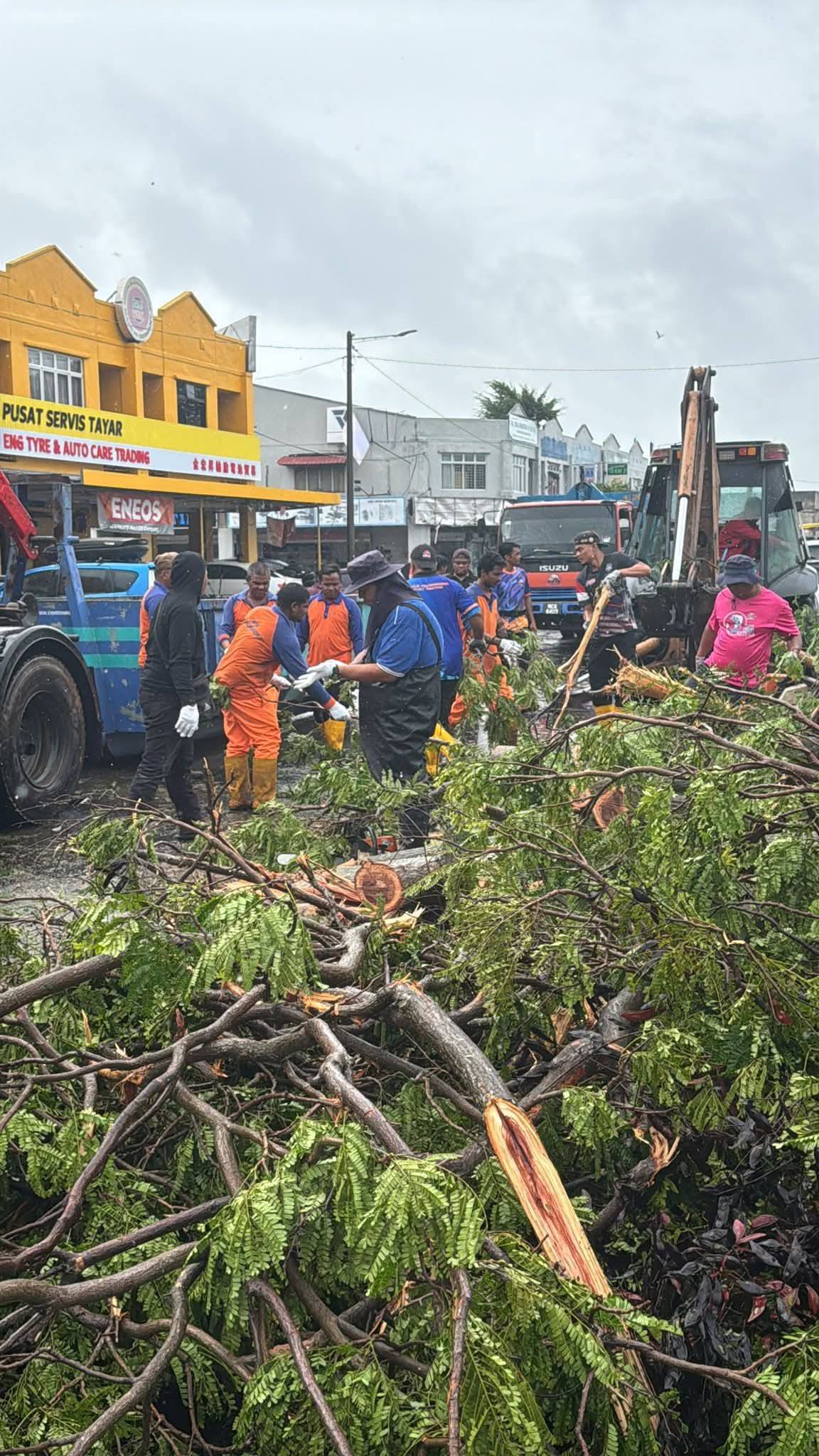 暴风后,消拯部队赶到现场进行清理工作。(图取自SEREMBAN Macam Macam Ada面子书)