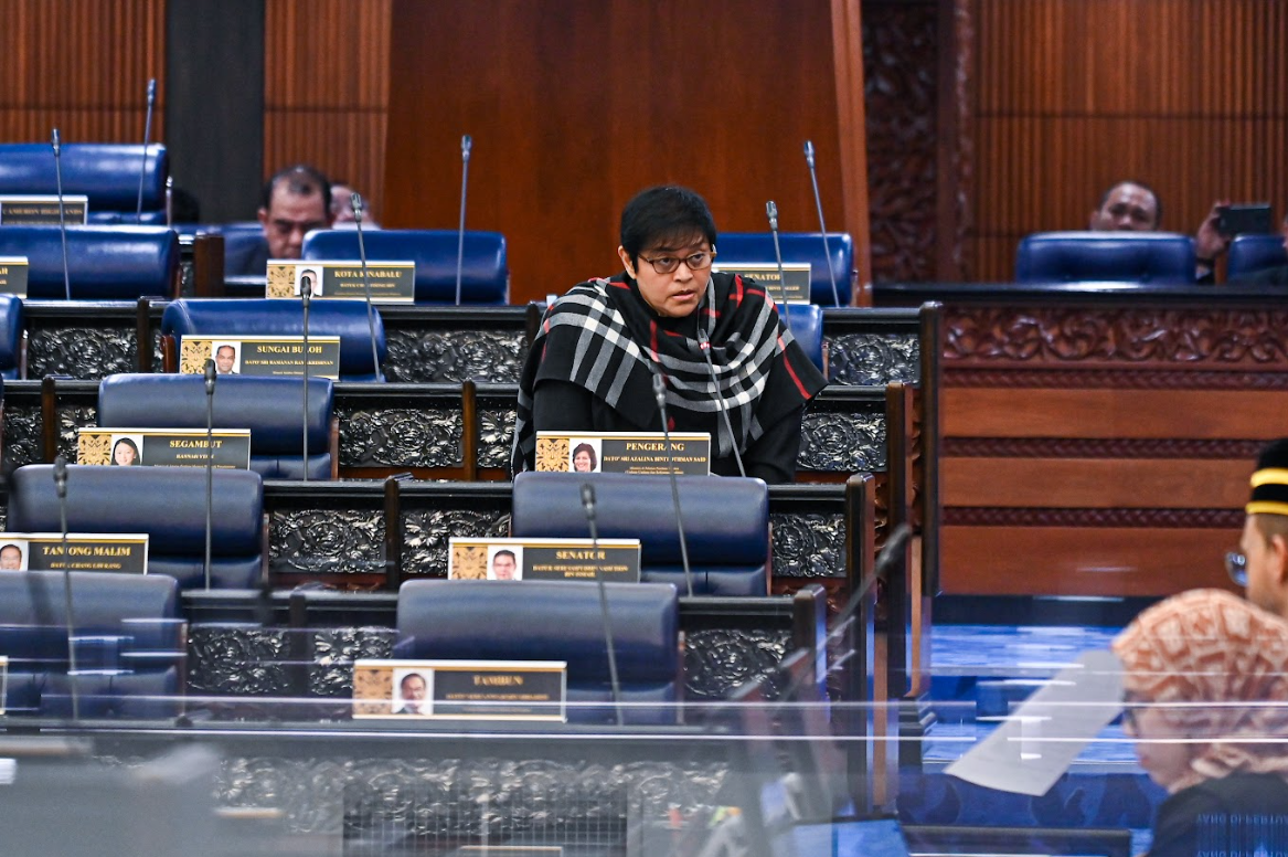 首相署(法律及体制改革)部长阿莎丽娜今天在国会下议院问答环节结束后,为修宪法案进行一读。