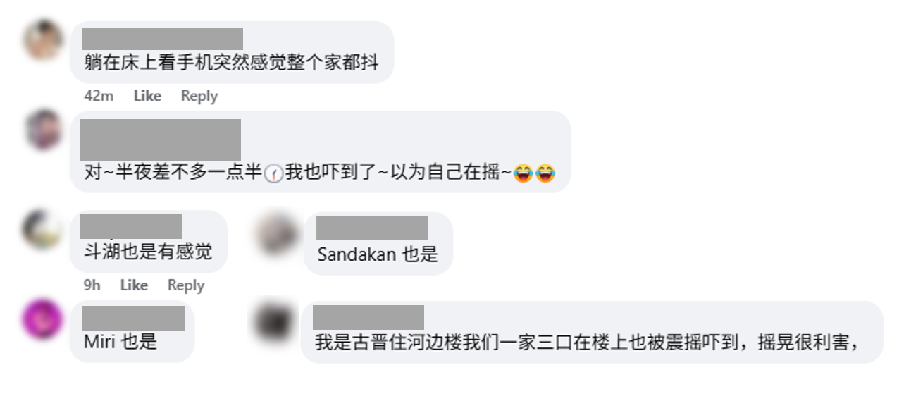 地震发生后,沙巴亚庇、斗湖、山打根、仙本那及砂拉越美里、诗巫等多地,甚至汶莱居民都纷纷在社交媒体上表示感受到了震动。