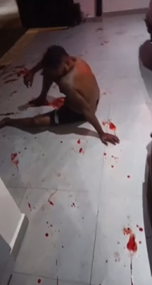 而另一条视频耶显示,一名疑似屋主的印裔男子坐在庭院地上,看似受伤,四周地面血迹斑斑,场面骇人。