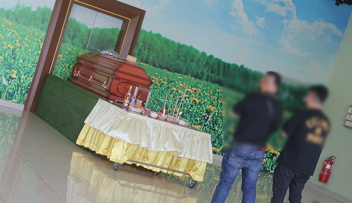 在场仅有两名身穿黑衣的男子送谢侑芯最后一程,所有程序皆由家属代表律师陈俊达和殡葬业者代办,场面冷清。