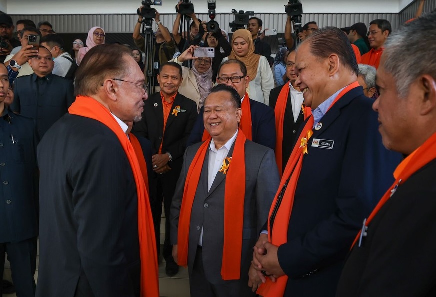 首相安华(左一)与亚历山大(中)出席工程部常月集会(图源Alexandar Nanta Linggi面子书)