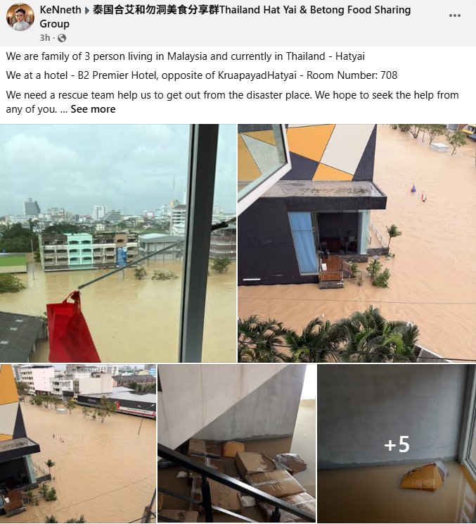 双溪大年义消队主席梁明达接受《每日新闻》采访时表示,合艾和宋卡的严峻情况,可能促使泰国军方暂时不允许他们进入灾区。