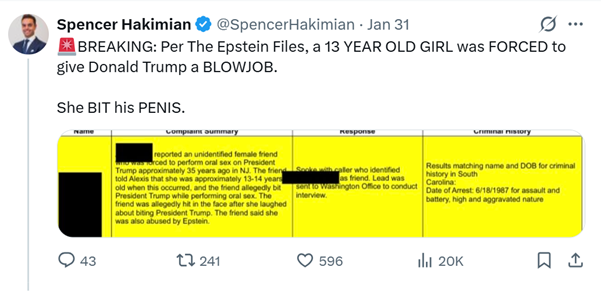 其中最引发震撼的内容之一,是文件中竟提及一项针对美国总统特朗普的指控,他被指涉嫌曾性侵一名年仅13岁的女孩,消息曝光后掀起巨大波澜。