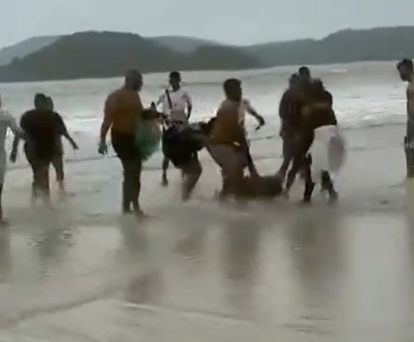 然而,他们抵达后发现海浪汹涌,给搜救行动带来困难。所幸,附近度假村的工作人员驾驶水上摩托前来协助,将两名遇难者拖回岸边。