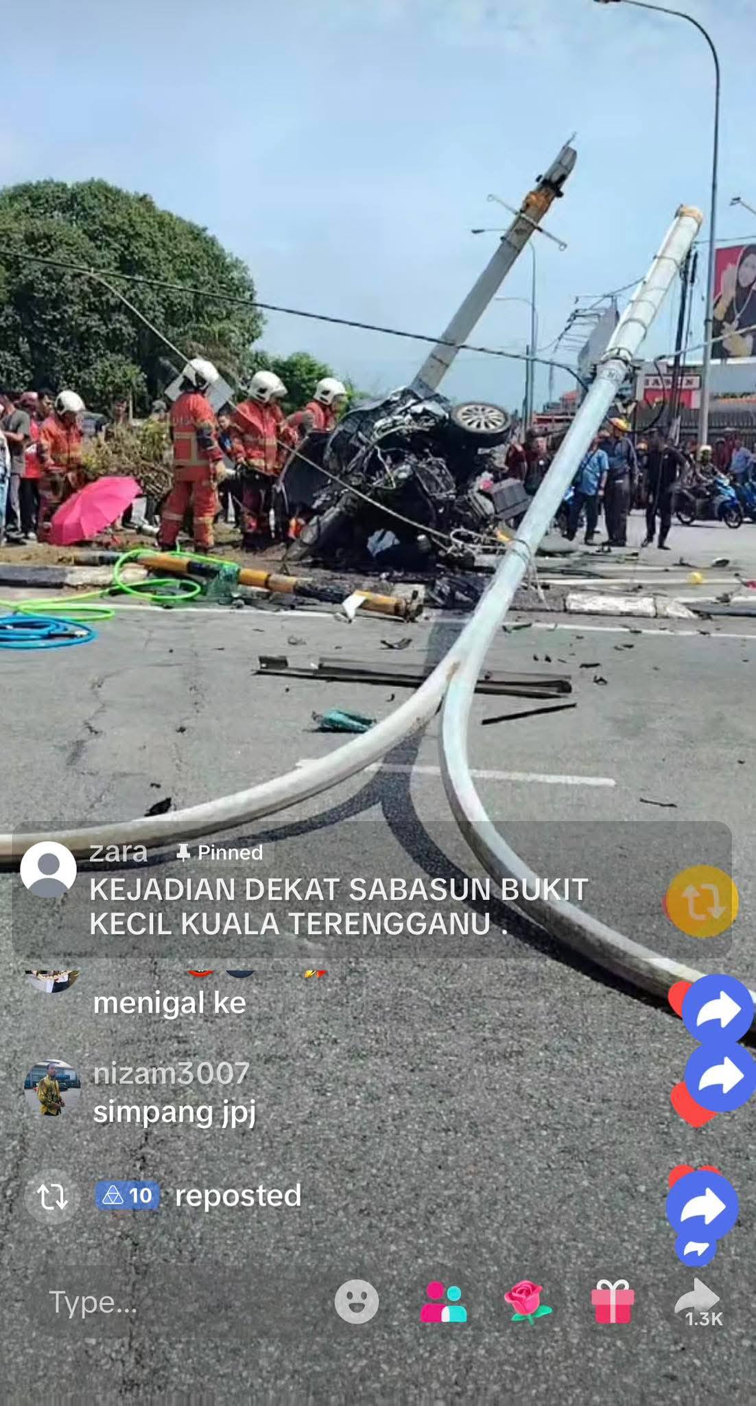 更令人心疼的是,马兹里尤索透露,事发时他正要去瓜拉勿浪(Kuala Berang)办事,途中路过车祸现场时,看到路上躺着一具用雨伞遮住的遗体。