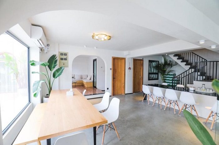 这家民宿的主理人是Kiki和乔治,落地玻璃的窗户设计,夕阳西下的晚风,微暖的阳光在窗帘间舞动,无论是看书或发呆,或是谈情,都很适合啊!
