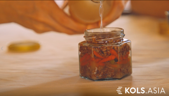 阿美族通常在祭天祈福时制作酒酿,在蒸熟的红糯米撒上酒麴,酿出有文化、也有自己味道的酒酿。逐渐熟练后,接着DIY酒酿辣椒,一层酒酿、一层辣椒,将酒香、辛香一起封罐,再带回家中延续部落风味。