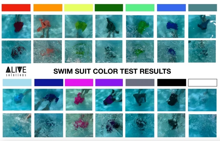 白色、浅蓝色和黑色是最不推荐的泳衣颜色,在实验中这些颜色容易和环境混为一体,或是容易和水面上的光影混淆,在能见度低下的情况里,遇到溺水时并不容易被察觉,无论大人、小孩的泳衣都不推荐。