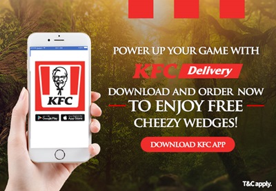 就算亲自未能前往,在接下来的日子里,当妳的他想要和战友连线增进一下感情时,不妨就当放他一天假期,贴心地叫 KFC Delivery 外卖,让两人过一个和乐融融又美味可口的休闲日子吧! 现在,只要透过下载全新 KFC Delivery 手机 App 然后订餐 (App Store | Google Play Store),就有机会额外免费获取一份 Cheezy Wedges,名额有限送完为止! 赶快下载然后订餐吧~ (* 须符合条规)