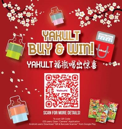 Yakult在新年期间推出 “Yakult 福瓶喝出惊喜” 新春优惠活动! 从 1 月 10 日起至 2 月 28 日,只要在马来西亚任何一间百货商店购买 Yakult 益生菌饮品,在瓶盖上寻获 QR Code, 你就是其中一位幸运得奖者! 扫描 QR Code 后,到链接的网址填写资料再点击 “发送” 以赢取奖品。 每一个 QR Code 只限一次兑现。
