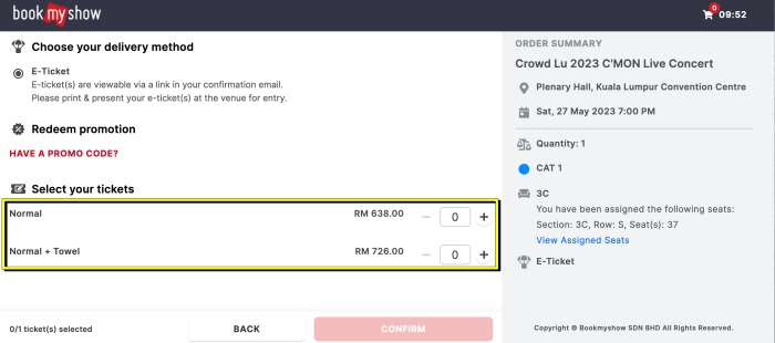 基本上的购票网站操作都是大同小异,但最重要就是事先读好 T&C,还有准备好资料和买票预算,就能减少时间犹豫,就不用错过喜欢的心意位置啦!
