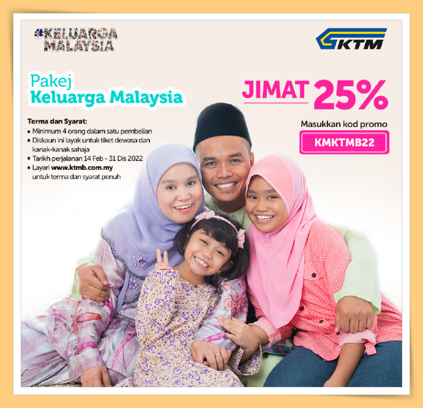 这项优惠的名称是“Pakej Keluarga Malaysia”,顾名思义就是大马一家搭电动火车可享有25%的折扣。不过,这项优惠需遵守规则和条列,即需4个人以上才能享有折扣。
