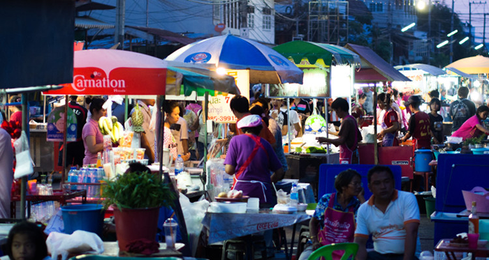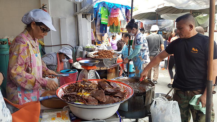 从市场出来沿着马路走,临近的 Sala Daeng Soi 2 还有一条美食街,路边两旁都是摊贩,想吃什么都有!